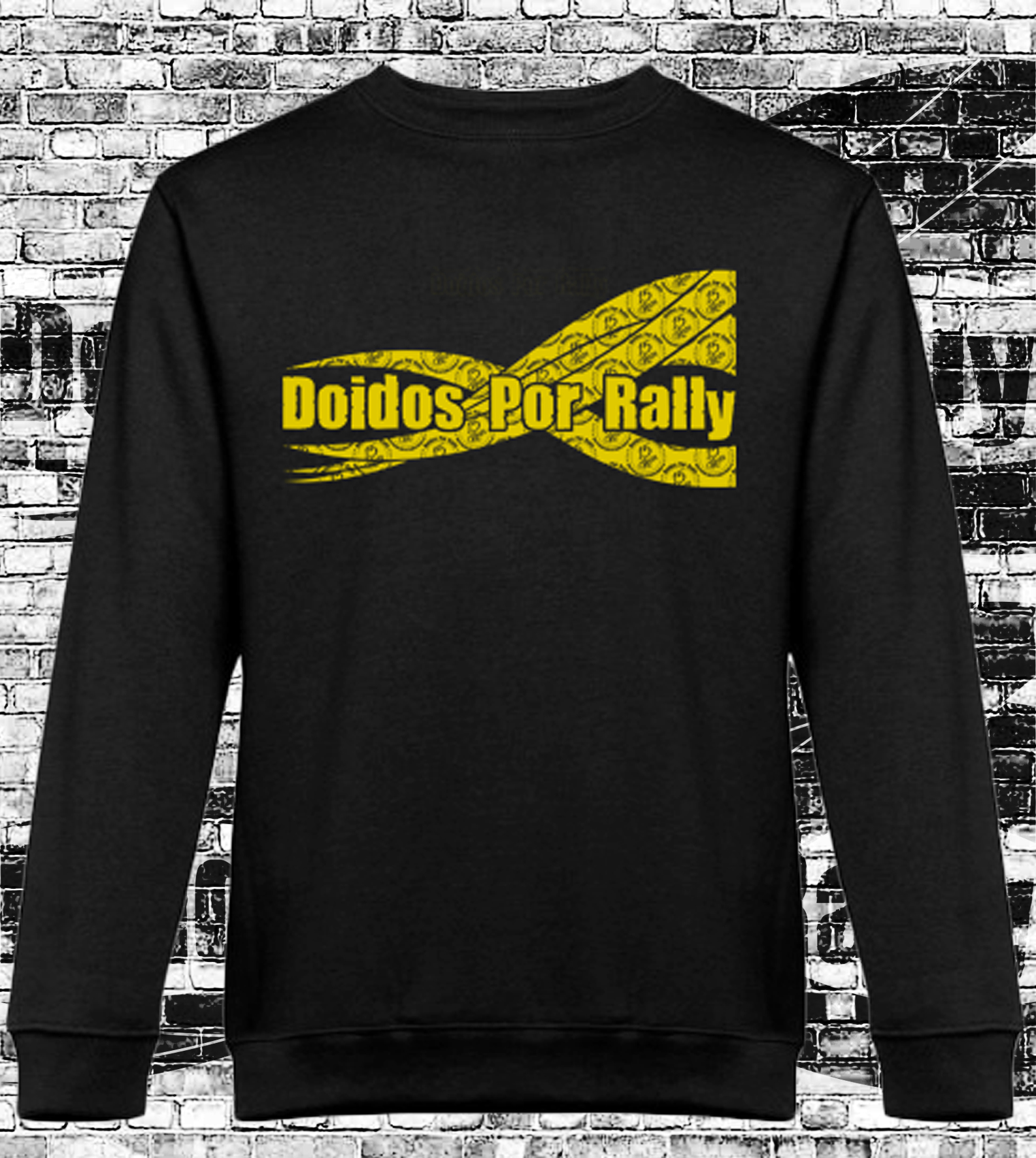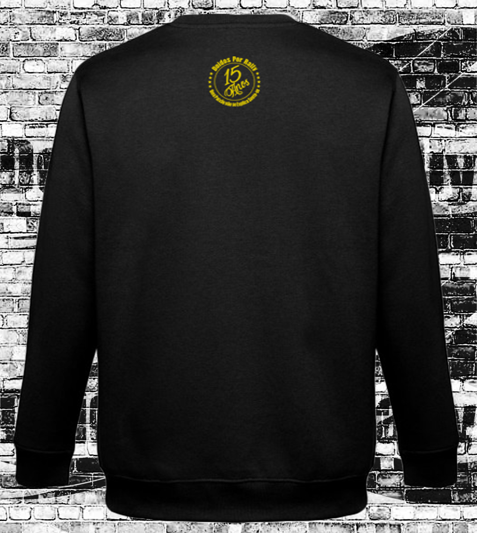 SWEAT SEM CAPUZ PRETA LOGOTIPO VINTAGE 15 ANOS “DOIDOS POR RALLY” DOURADO